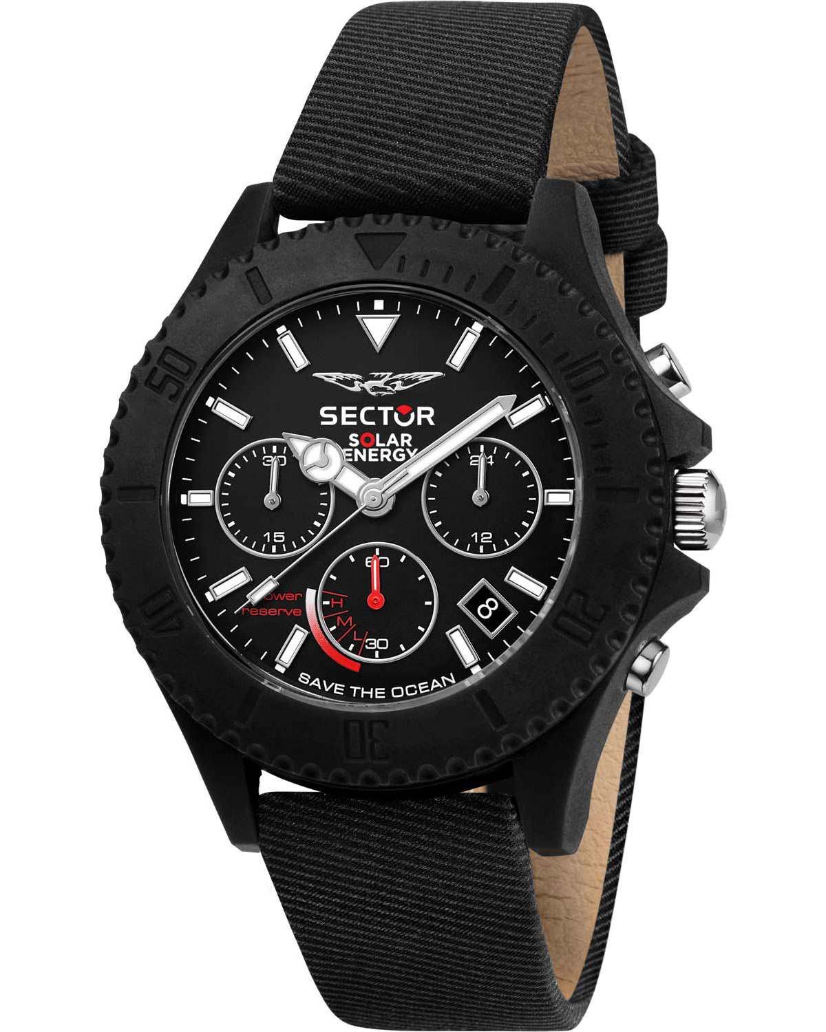 SECTOR Save The Ocean Solar Chronograph Black Leather Strap